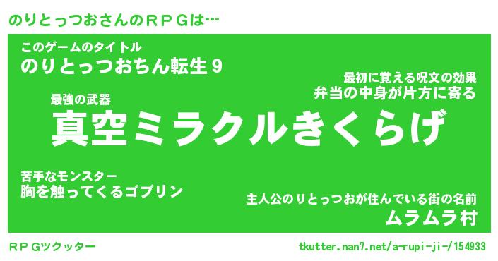 | 伝説のあだ名 | 『封印されし竜騎士のりとっつお』 |