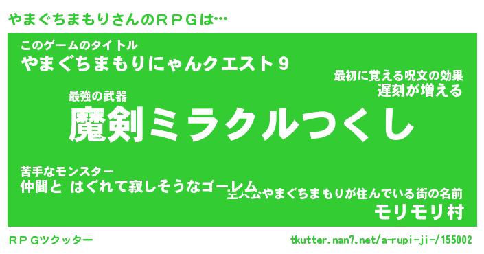 | 伝説のあだ名 | 『伝説の竜騎士やまぐちまもり』 |