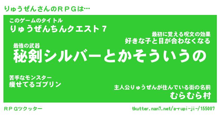 | ファンタジー風あだ名 | 『リュフェル』『エターナルリュウゼンー』 |
