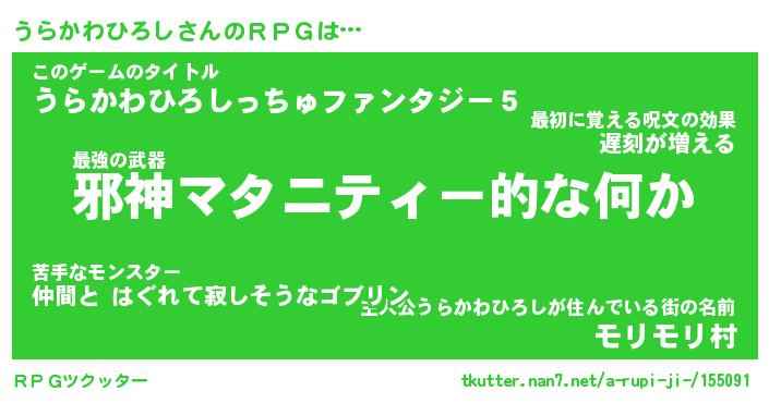 | 伝説のあだ名 | 『封印されしスナイパーうらかわひろし』 |