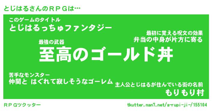 | ファンタジー風あだ名 | 『トジフェル』『エターナルトジハルー』 |