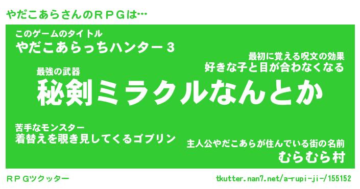 | 伝説のあだ名 | 『伝説の竜騎士やだこあら』 |