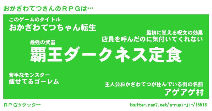 | 男性向けラノベタイトル風あだ名 | 『オカザワテツアートオンライン』 |