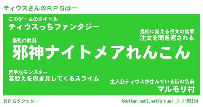 | 男性向けラノベタイトル風あだ名 | 『ティウスアートオンライン』 |