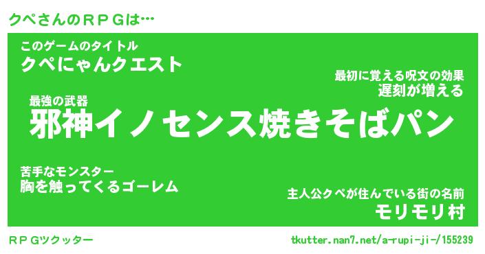 | 男性向けラノベタイトル風あだ名 | 『クペアートオンライン』 |