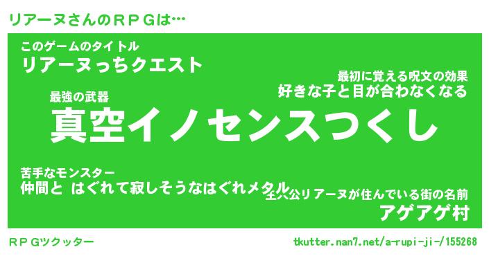 | ファンタジー風あだ名 | 『リアフェル』『エターナルリアーヌー』 |