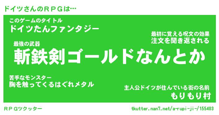| ファンタジー風あだ名 | 『ドイフェル』『エターナルドイツー』 |