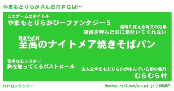 | 胡散臭い通販商品みたいなあだ名 | 『モテモテ間違いなし霊験あらたかなお札…その名も「やまもとりらか」』 |