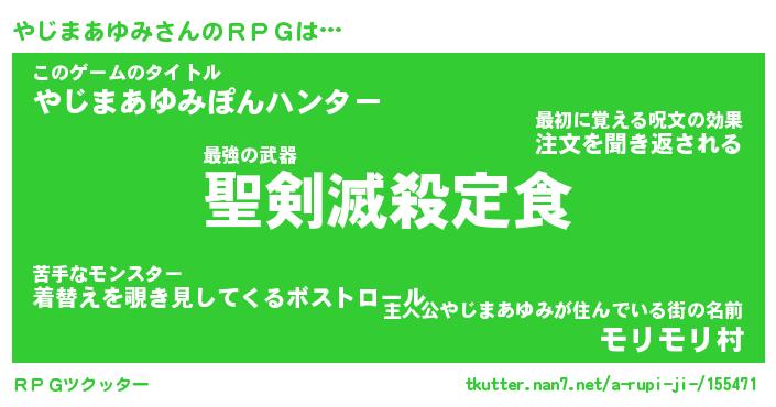 | 伝説のあだ名 | 『伝説のスナイパーやじまあゆみ』 |