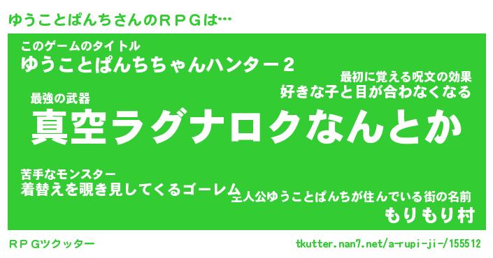 | 伝説のあだ名 | 『封印されし竜騎士ゆうことぱんち』 |