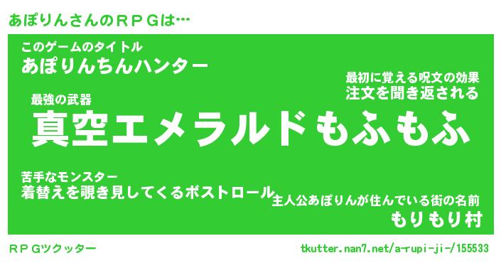 | ファンタジー風あだ名 | 『アポフェル』『エターナルアポリンー』 |