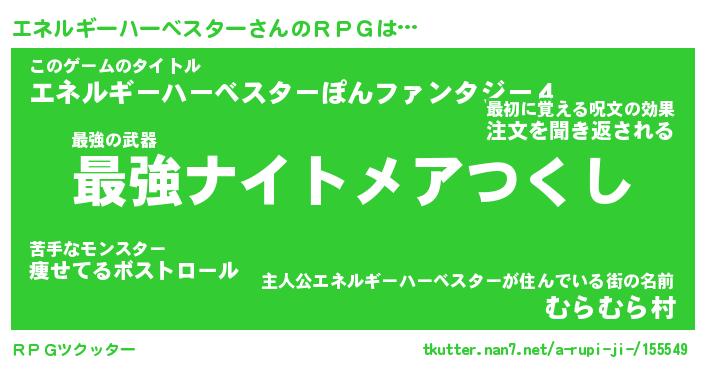 | ヒーロー風カッコイイあだ名 | 『スーパーエネルギーハーベスター』 |