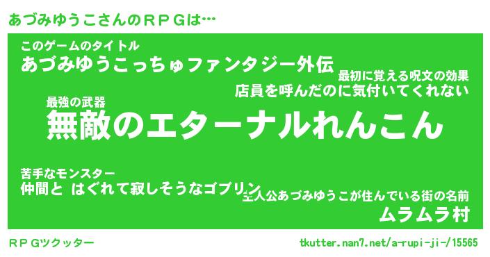| 男性向けラノベタイトル風あだ名 | 『アヅミユウコアートオンライン』 |