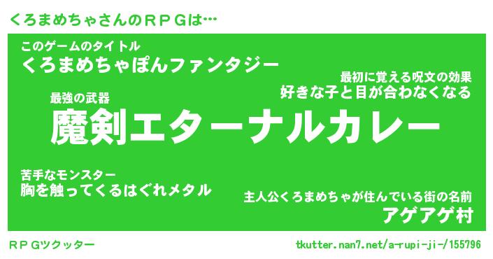 | 伝説のあだ名 | 『伝説の傭兵くろまめちゃ』 |
