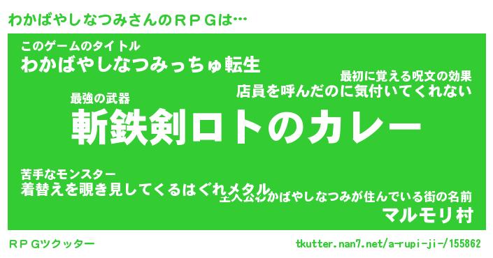 | 胡散臭い通販商品みたいなあだ名 | 『必ず成功するブレスレット…その名も「わかばやしなつみ」』 |