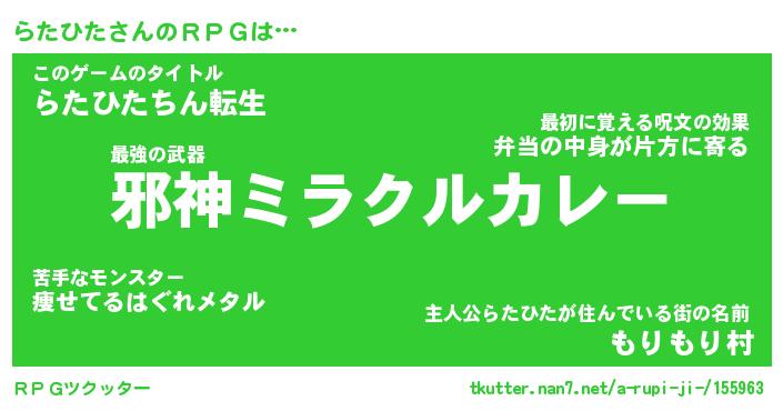 | ヒーロー風カッコイイあだ名 | 『スーパーラタヒタ』『銀牙騎士ラタ』 |