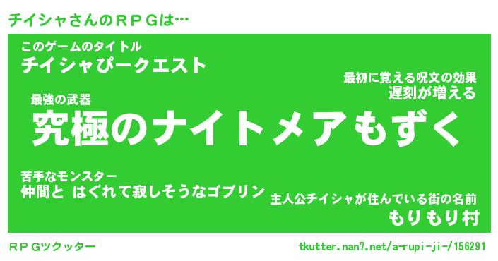 | 男性向けラノベタイトル風あだ名 | 『チイシャアートオンライン』 |