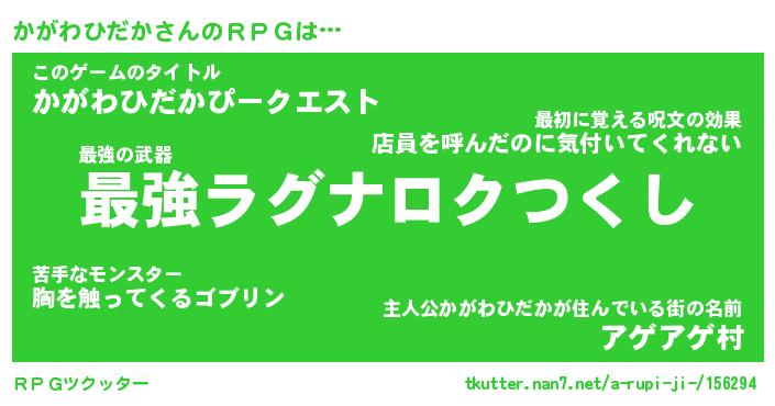 | 男性向けラノベタイトル風あだ名 | 『カガワヒダカアートオンライン』 |