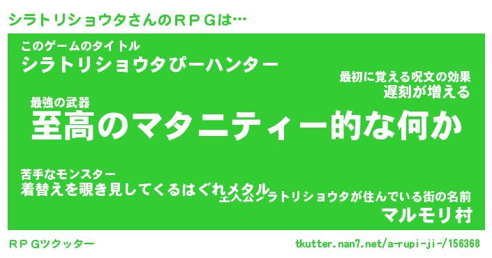 | 伝説のあだ名 | 『不死鳥のスナイパーシラトリショウタ』 |