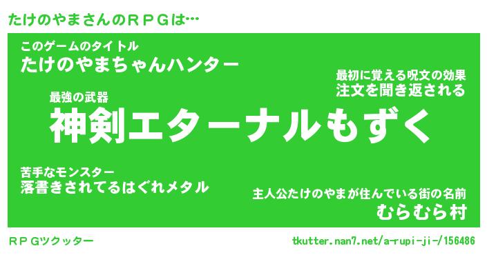 | 男性向けラノベタイトル風あだ名 | 『たけのやまの憂鬱』 |