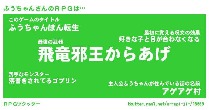 | 男性向けラノベタイトル風あだ名 | 『フウチャンアートオンライン』 |