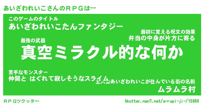 | 胡散臭い通販商品みたいなあだ名 | 『億万長者になれるブレスレット…その名も「あいざわれいこ」』 |