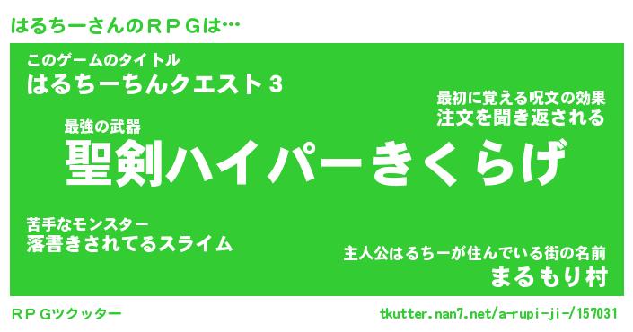 | ファンタジー風あだ名 | 『ハルフェル』『エターナルハルチーー』 |