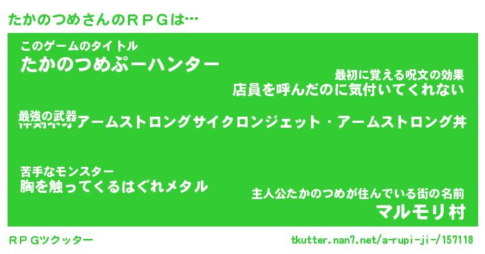 | ファンタジー風あだ名 | 『タカフェル』『エターナルタカノツメー』 |