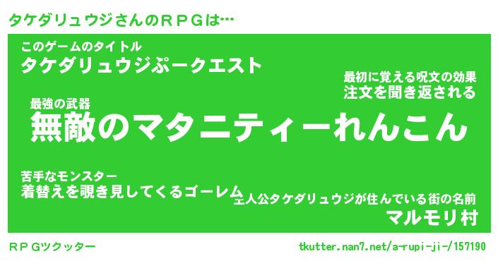 | 伝説のあだ名 | 『封印されしスナイパータケダリュウジ』 |