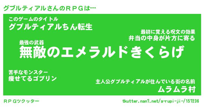 | 男性向けラノベタイトル風あだ名 | 『グブルティアルアートオンライン』 |