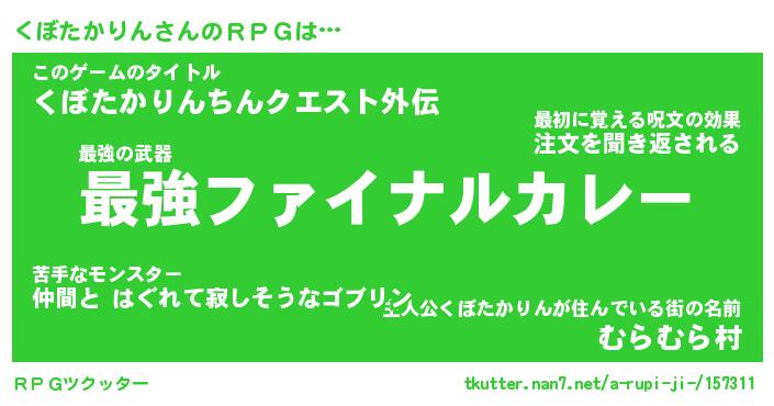 | 男性向けラノベタイトル風あだ名 | 『クボタカリンアートオンライン』 |