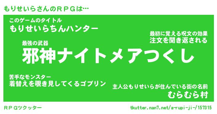 | 伝説のあだ名 | 『封印されしスナイパーもりせいら』 |