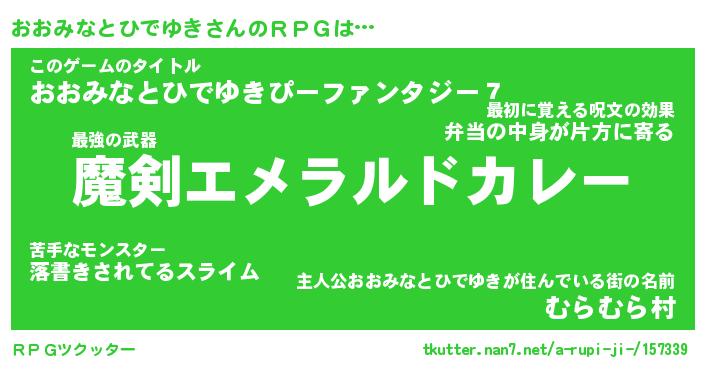 | 伝説のあだ名 | 『伝説のスナイパーおおみなとひでゆき』 |