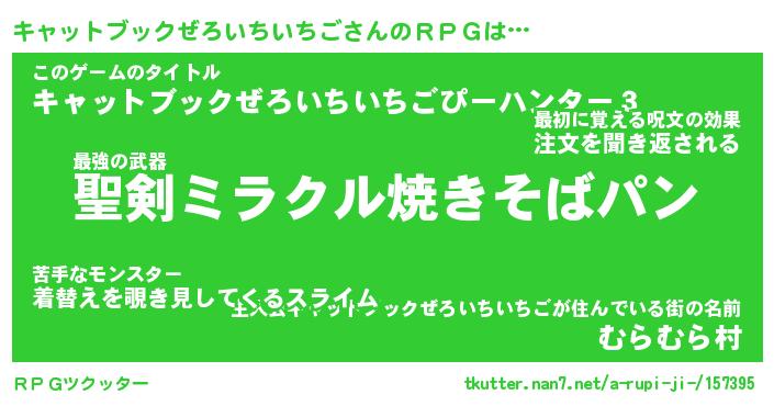 | 伝説のあだ名 | 『伝説の竜騎士キャットブックぜろいちいちご』 |