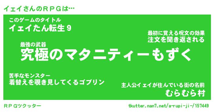 | 男性向けラノベタイトル風あだ名 | 『イェイアートオンライン』 |