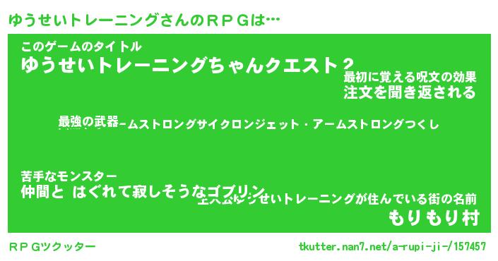 | 伝説のあだ名 | 『封印されし竜騎士ゆうせいトレーニング』 |