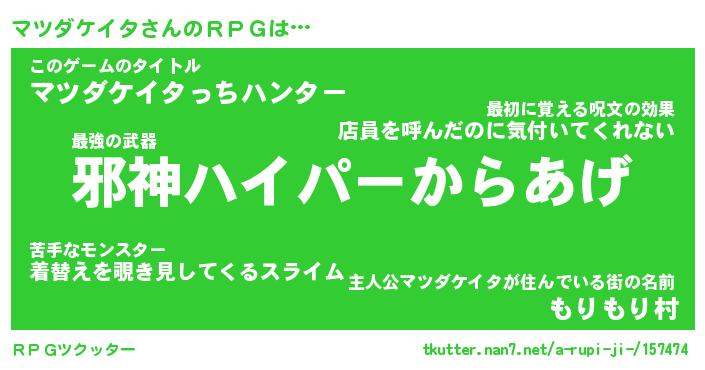 | 伝説のあだ名 | 『封印されし竜騎士マツダケイタ』 |