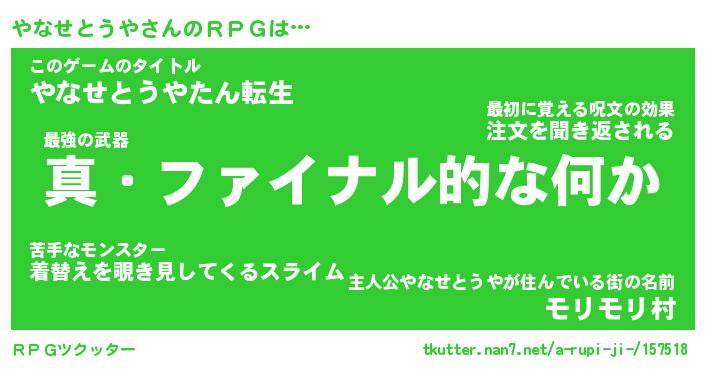 | 男性向けラノベタイトル風あだ名 | 『ヤナセトウヤアートオンライン』 |