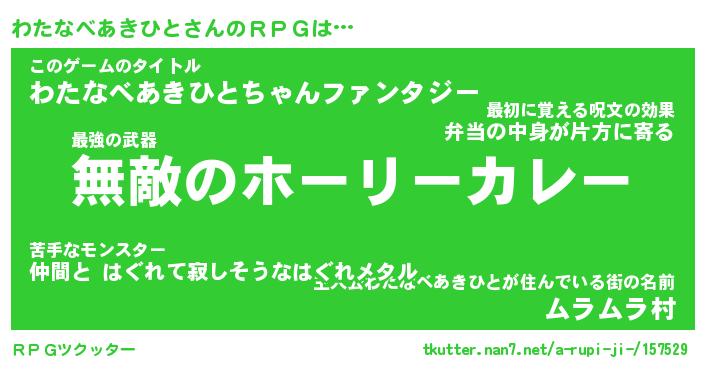 | 胡散臭い通販商品みたいなあだ名 | 『億万長者になれる水晶球…その名も「わたなべあきひと」』 |