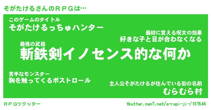| 伝説のあだ名 | 『伝説のスナイパーそがたける』 |