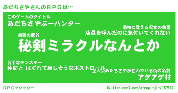 | ポケモン風あだ名 | 『アダチュウ』『アダチダネ』 |