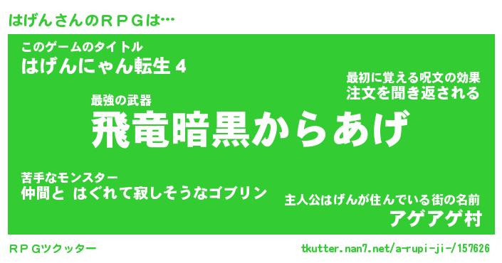 | 伝説のあだ名 | 『封印されし傭兵はげん』 |