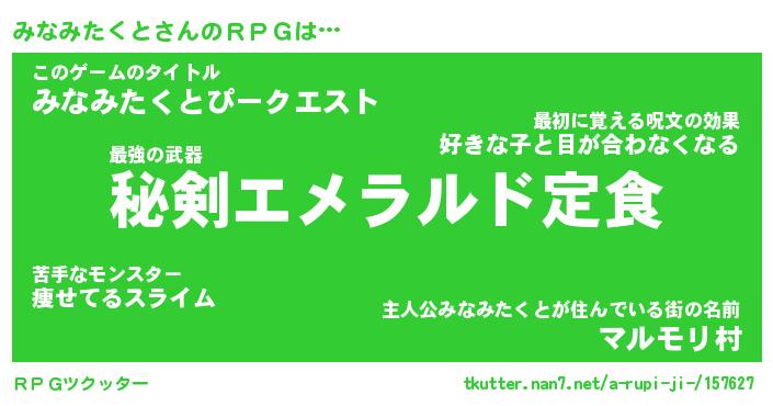 | 伝説のあだ名 | 『伝説のスナイパーみなみたくと』 |