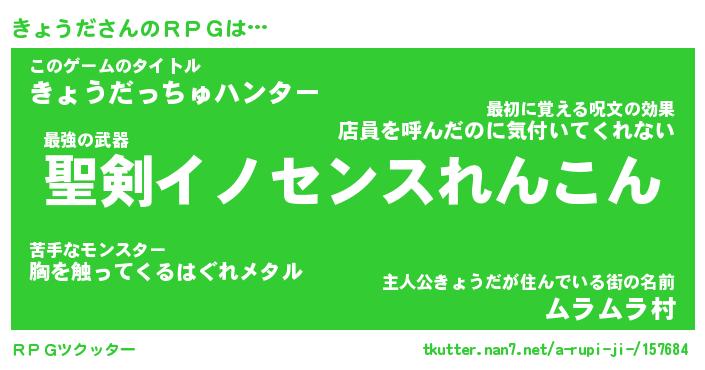 | ファンタジー風あだ名 | 『キョフェル』『エターナルキョウダー』 |
