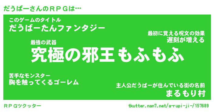 | ファンタジー風あだ名 | 『ダウフェル』『エターナルダウバーー』 |