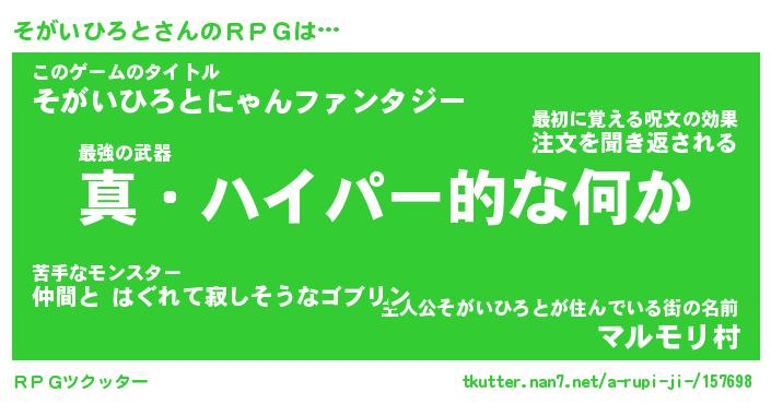 | 男性向けラノベタイトル風あだ名 | 『ソガイヒロトアートオンライン』 |
