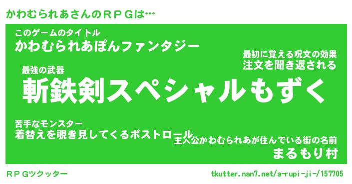 | 伝説のあだ名 | 『伝説の竜騎士かわむられあ』 |