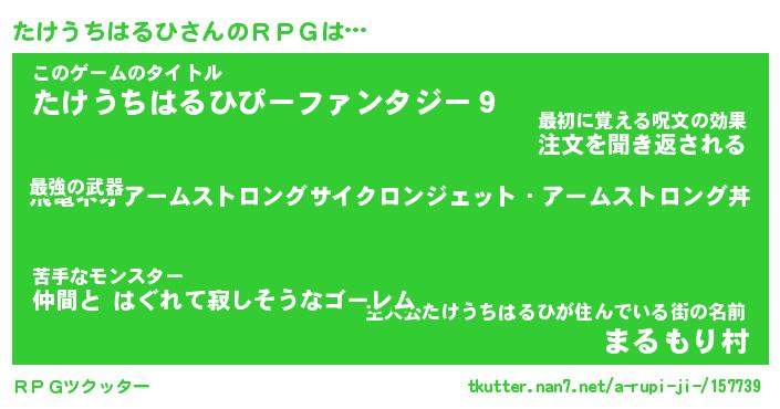 | 男性向けラノベタイトル風あだ名 | 『タケウチハルヒアートオンライン』 |