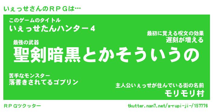 | 伝説のあだ名 | 『伝説の傭兵いぇっせ』 |
