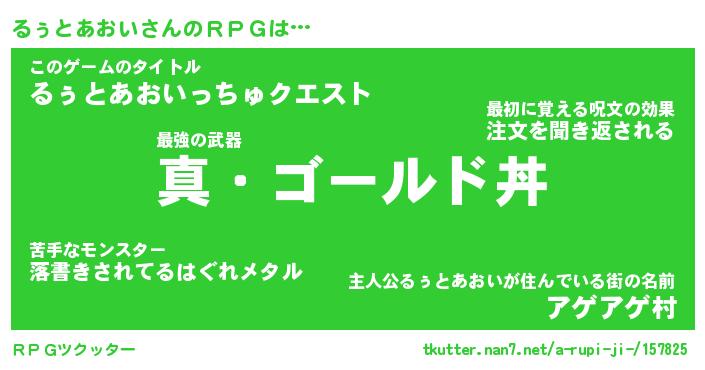 | 男性向けラノベタイトル風あだ名 | 『ルゥトアオイアートオンライン』 |